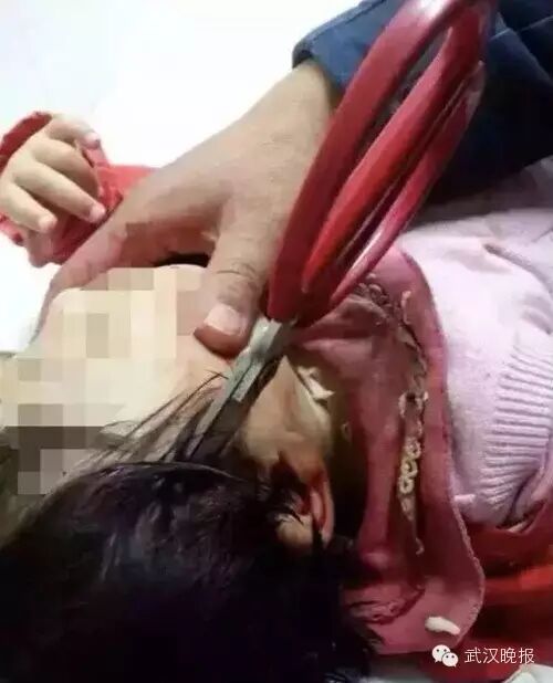 洪洪(化名)今年22个月大,事发当天,她的爸妈在厨房里准备午饭,留着她独自一个人在房间里玩耍,突然听到女儿撕心裂肺的哭喊声,夫妻二人跑进房间,眼前的一幕把他们吓蒙了:女儿坐在房间的地上号啕大哭,一把剪刀斜插在孩子右眼旁太阳穴附近,鲜血顺着耳边流淌到了地上。