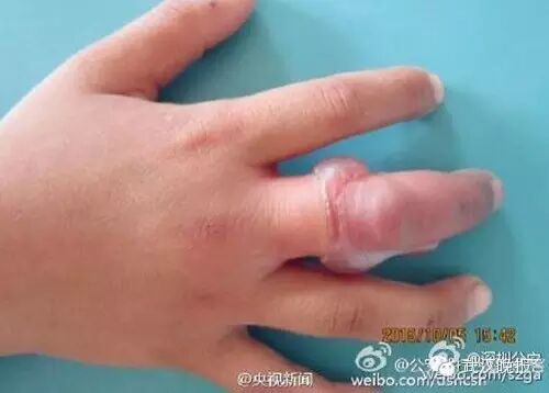 近日,江苏徐州4岁女孩拿了一根扎头发的橡皮筋套在自己手指上玩,结果导致手指上的皮肤起了大水泡,指头肿得非常粗,已经发黑发紫。