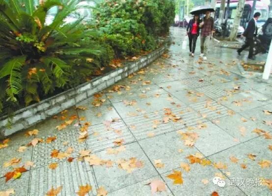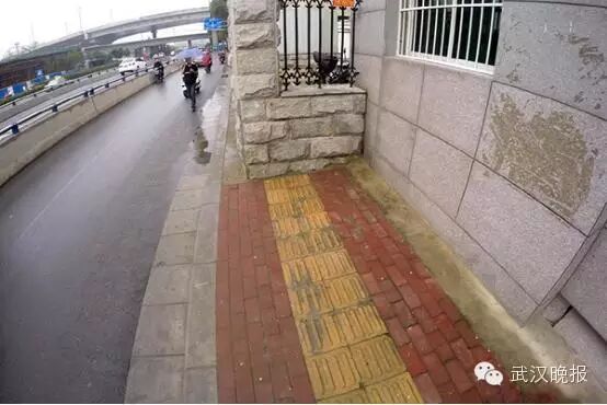在汉口,中山大道、民主路、前进五路、前进四路等路面,仔细查看,都存在盲道突然消失的情况。