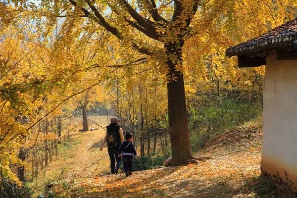 黄陂清凉寨,素有武汉最美山村之称。秋天,风轻云淡,山上各种树种呈现出不同的颜色,层林尽染,缤纷斑斓,绘就清凉寨独特而浓郁的秋韵。所在刘家山地貌独特,至今完好保存了古银杏树近百株,年产银杏5万公斤。到了秋天,银杏树叶全部变成金黄色,就像一簇簇金黄的小扇子插在树梢上,风吹叶落,地上散落些许,更添诗意。这种美,令人心醉。