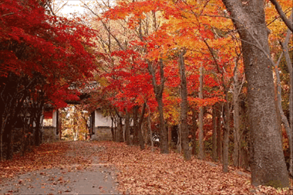 这里的颜色很丰富,黄灿灿的银杏,红彤彤的枫树,与深沉褐色的桂树、四季常青的樟树相互交织,层次分明。