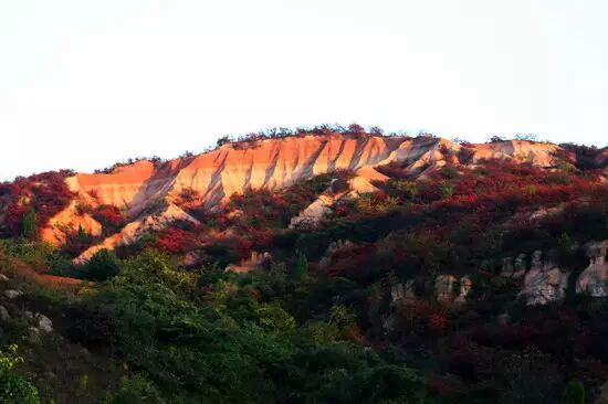 全省惟一一个丹霞地貌地质公园,红色砂砾岩在雨水侵蚀、溶蚀的作用下,形成了复杂的地形,特别是沟壑两侧的崖壁,更是造型奇特,蔚为壮观:红色的山体与绿树山花相映衬,如诗如画,美不胜收。是旅游观光、休闲养生、科考、探险的理想去处。