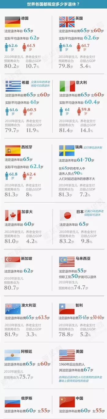 这意味着,2018年前还没退休的人都会受到影响,而且,1990年(含1990年)以后出生的女性、以及1985年(含1985年)以后出生的男性都将在65岁退休,分别比原来延长了10年和5年。
