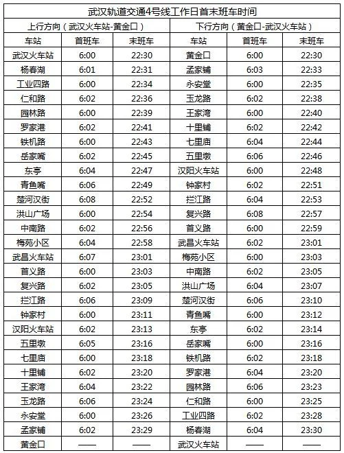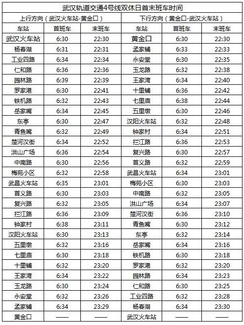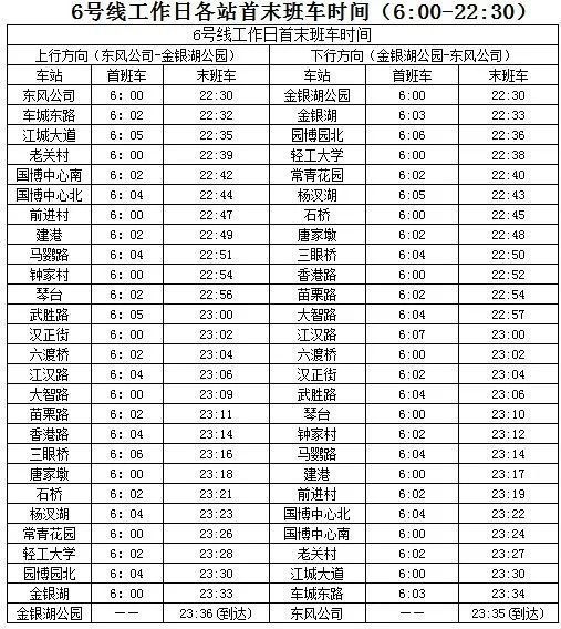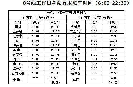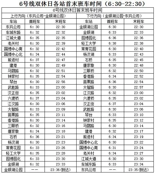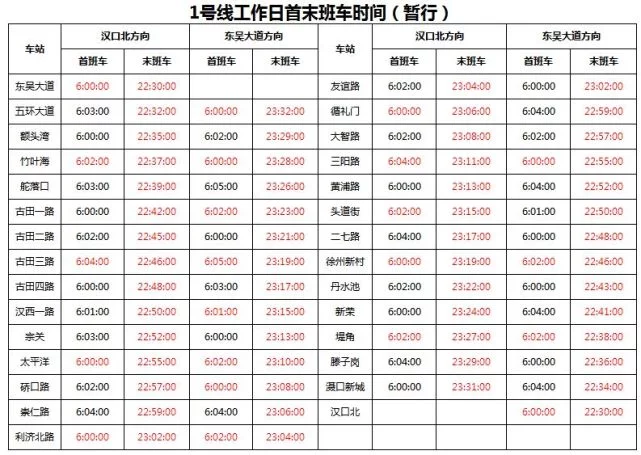 注:1号线双休日末班车时间与工作日末班车时间一致。