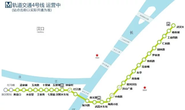 4号线是我国第三条穿越长江的地铁,穿越了武汉市汉阳区、武昌区、洪山区3个城区。4号线一期工程于2009年9月全面开工建设。
