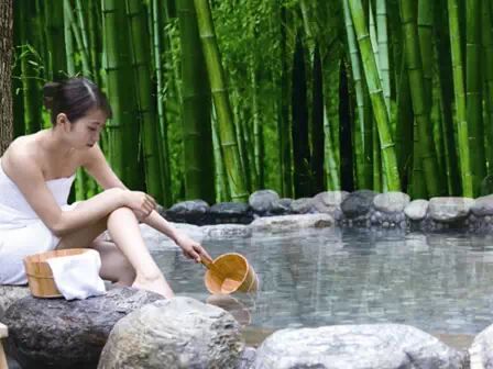 温泉特色:融合了森林、温泉、桂花、楠竹等原生态资源,融汇了新健康生态养生理念,更结合山地梯田地形打造露天泡浴与密林修竹水乳交融、温泉养生与森林休闲紧密结合的“氧吧+温泉”的双料养生产品。