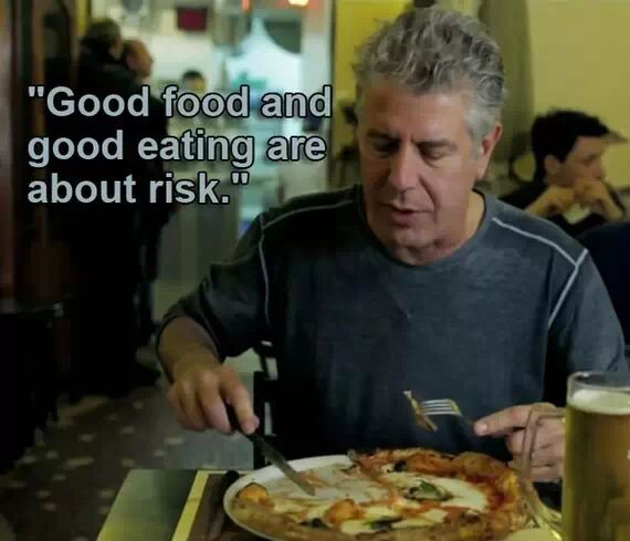 「世界上最会坑钱的地方就是观光客餐厅,像是在罗马或威尼斯等地,你可能会在观光客餐厅吃到最难吃的食物。最糟的情况就是,去到了像是胡志明市或是罗马,然后你发现自己处在一间观光客才来的假地道餐厅。」
