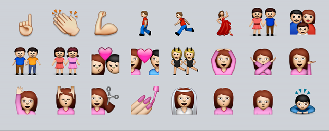 今天推特上许多程序猿都在欢欣鼓舞地讨论一件事:苹果刚刚发布的iOS 8.3测试版,一下子增加了300个新的表情图标,除了可以任意地选择肤色,还多了很多不同性取向人士组成的家庭模式图标。