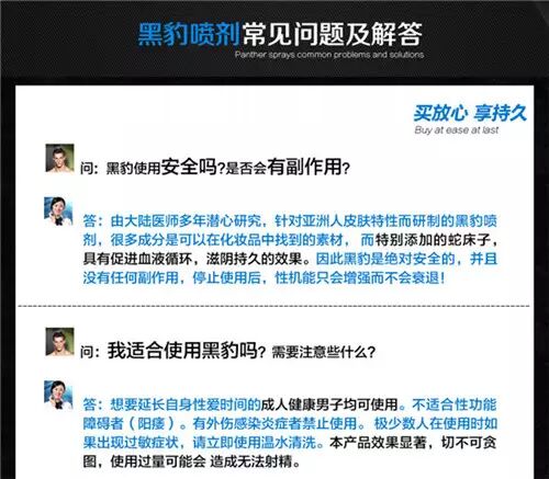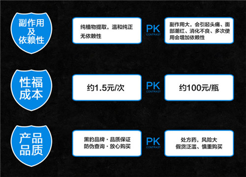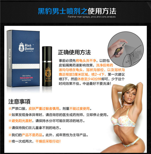 黑豹劲能延时喷剂与市面上其他类似产品的主要区别在于。成分均从非常珍贵的植物中提取精华,做到效果温和纯正,无副作用,无依赖性!所以在使用过程中不要浪费。