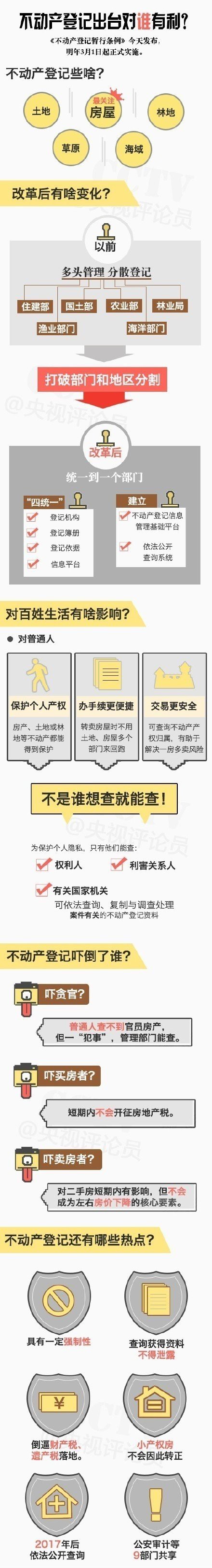 《不动产登记暂行条例》将从2015年3月1日起施行,今后包括集体土地、房屋建筑所有权等在内的十类不动产将在全国范围内进行统一登记,权利人、利害关系人可以依法查询。专家表示,将来楼市有望全面摸清家底。