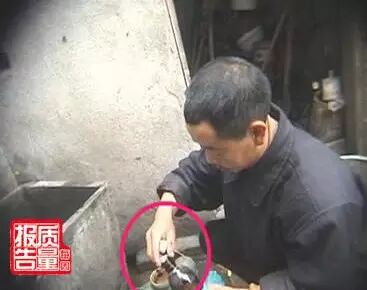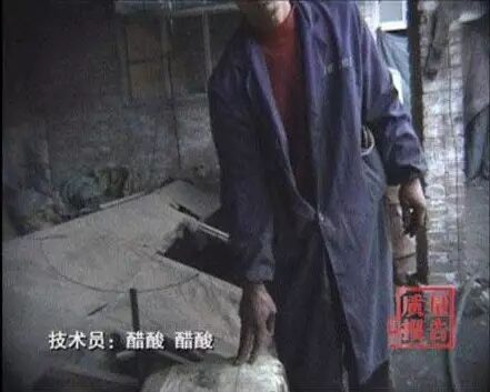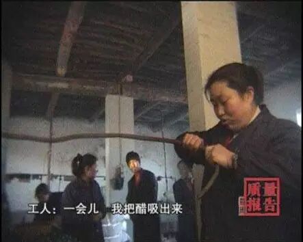 技术员:陈醋的颜色应该是深色的,这个原醋颜色太淡。记者:加了色素颜色就深了,像陈醋似的