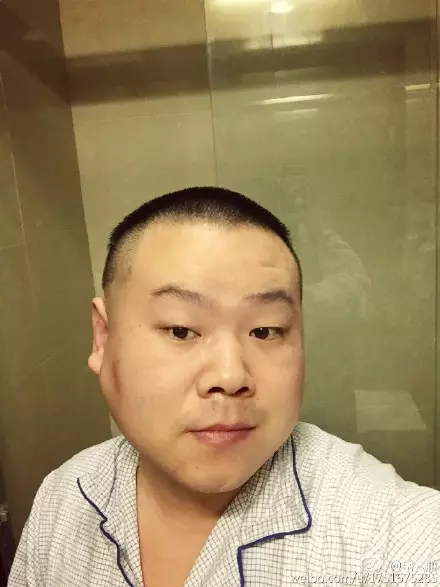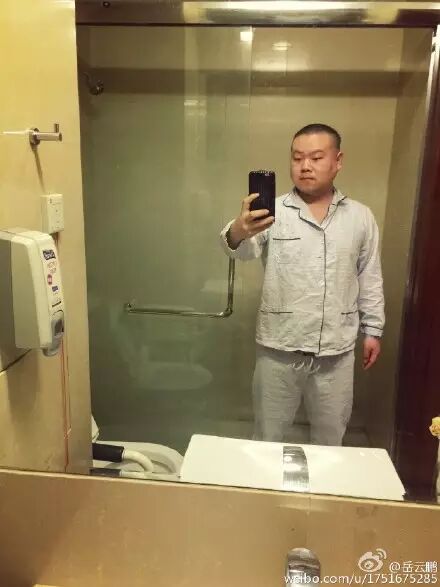 2月25日21点38分,相声演员岳云鹏通过微博晒穿着病号服的照片,并称:“以前发自拍我都会刻意掩饰自己的小瘤,今天不掩饰了。我就问大家一句,哥穿病号服帅吗?”照片中,岳云鹏手拿相机对镜自拍,耳朵下面明显鼓出一个包,但依然露出那副幽怨的小表情,非常的逗趣。