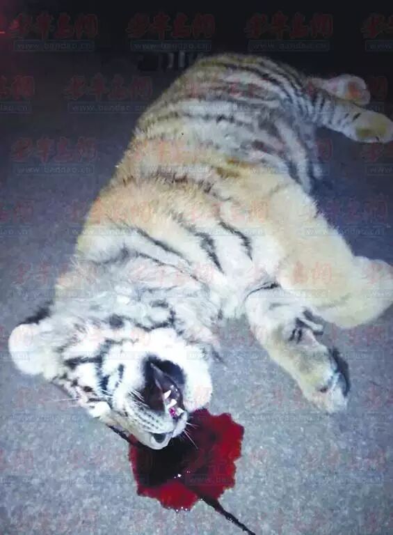 (记者了解到,小老虎系有人替景区代养,据当事人称小老虎为东北虎,仅7个月大,除夕夜里因受到鞭炮惊吓从楼顶笼子中逃出,坠楼。)