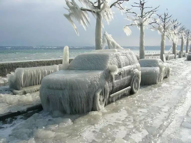 在美国东部,基本上,只要是液体,飘到天上就是雪,泼在地上都是冰。