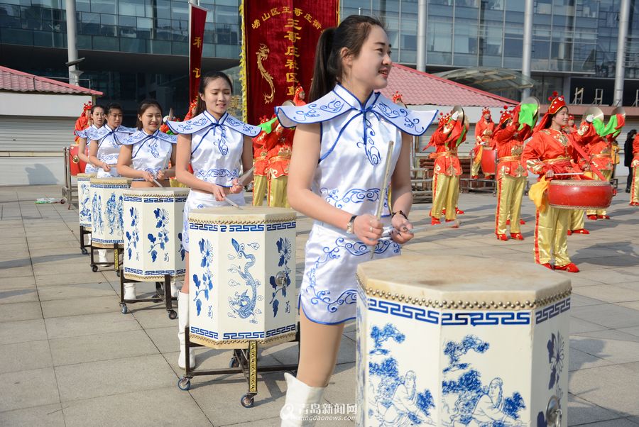青岛新闻网2月27日讯 2015崂山非遗节昨天在世纪广场热闹开幕,舞龙、舞狮、旱船、秧歌、锣鼓,一系列民俗表演让市民大饱眼福。当天来自崂山区下辖街道的16支队伍、700余名演员参与了汇演,规模和水准创历年非遗节之最。(记者 庞为 摄影报道)