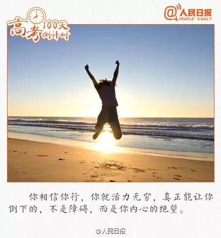 100天,2400个小时。是的,就是从现在开始!或许每天都充满艰辛,但是,这必将成为一生中最难忘的时光。人生要紧处,往往只有关键几步。要相信,你付出的所有汗水,都将变成未来的礼物。将来的你,一定会感谢现在拼搏的自己。100天,为梦想和青春,坚持!奋斗!加油!