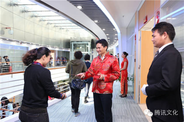 终于看到了小马哥真人,一改西装革履的男神形象,一身红彤彤的很是喜庆,“?丝”们都激动了!小编从Pony、Martin、Daniel和James手中拿到了红包,实在是太开心啦!
