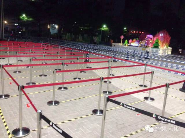 大楼下已经贴好了地标、围起了队伍的路线,等待着天亮后小伙伴们的到来。