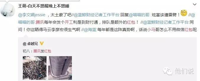 因为“别人家的公司”每到这时候都会“逗利是”,刷完微博再刷微信朋友圈。作为中国BAT的代表,当鹅厂高调刷小马哥,身边的朋友自然而然要问下百度或者阿里的童鞋,他们总是不厌其烦的说没有啦,顺便发一个仰头大哭的表情。