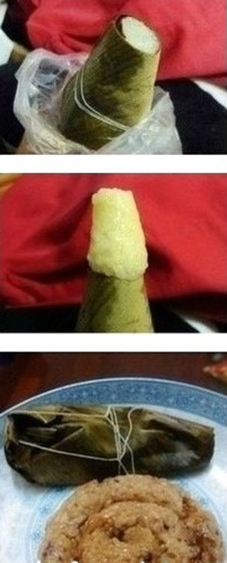 吃粽子怕油腻、怕粘手?没关系,教你新吃法:先在一端剪个口子,用力挤出来!然后就可以品尝美味了。