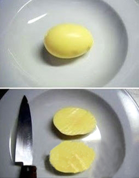 疯狂晃动你手中的鸡蛋,煮熟后你便得到了一个黄金鸡蛋(如图)!妙处:儿童更易食用,而且不会把蛋黄末搞得到处都是。