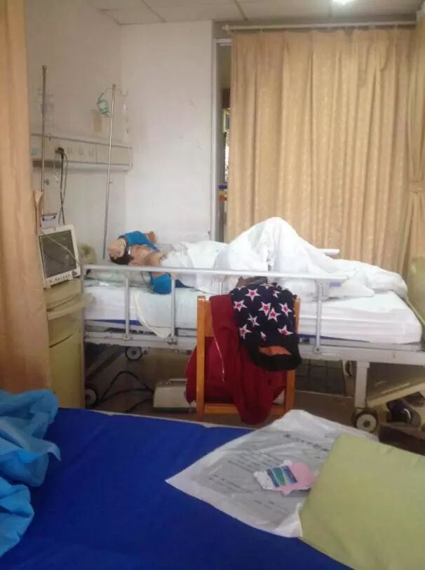 小孩子躺在病床上,直呼难受,呼吸困难。医生说还要再观察。据前来探望的孩子爷爷说,孩子今年上6年级,马上就开学了,没想到遭此横祸。