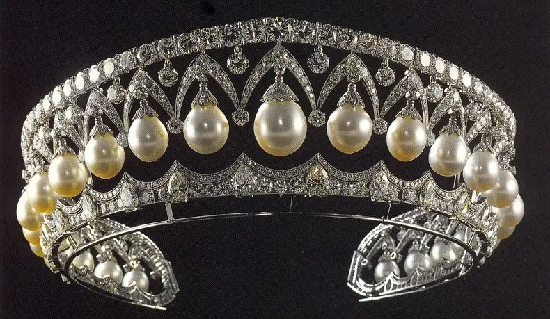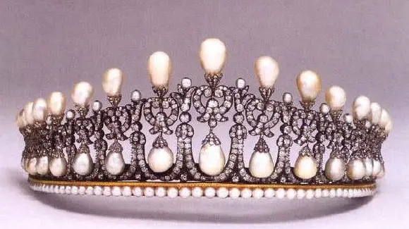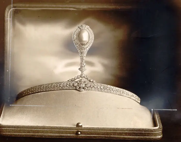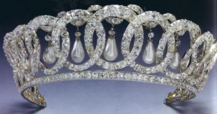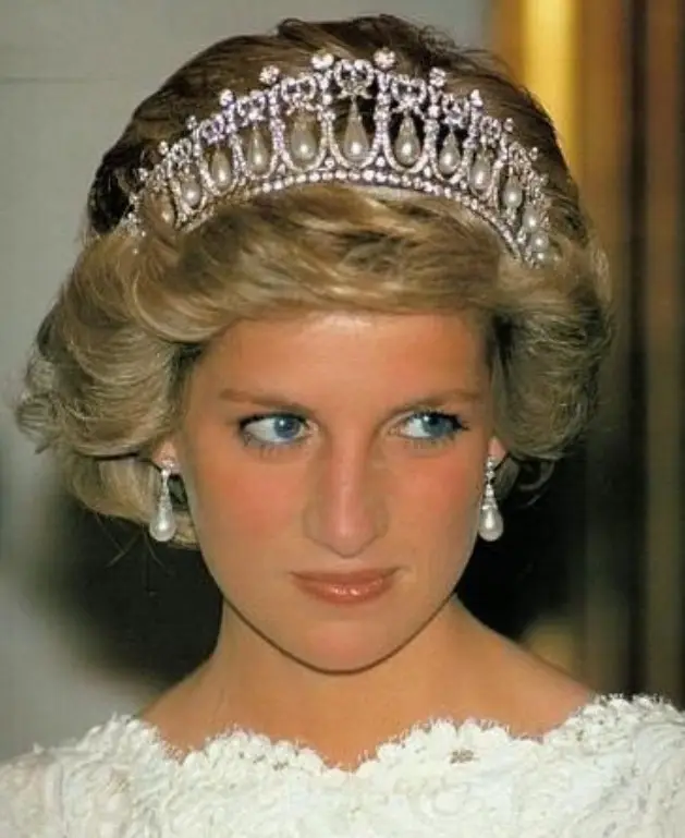 戴安娜在1981年得到了这顶王冠,玛丽王后在1913年命珠宝匠仿制她祖母剑桥公爵夫人的王冠制造的。王冠顶部的珍珠可以自由拆卸,传到戴安娜手上时被转换成了钻石。而拆卸下来的部分珍珠被制作成了与王冠相配的首饰。