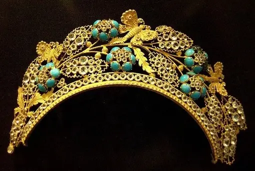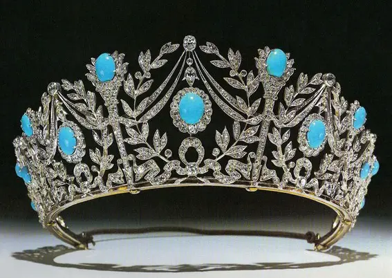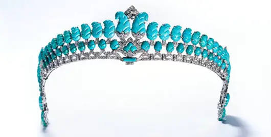 绿松石王冠:伊丽莎白王后从玛丽王后那儿得到了这顶王冠,并将它做为生日礼物送给了女儿玛格丽特公主。