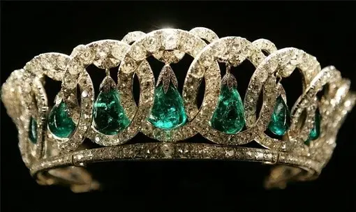 香港苏富比春拍会展出的CHAUMET绿宝石镶钻皇冠被誉为过去30年来拍卖市场上最为重要的稀世之宝,其估价约为500万至1000万美元。此皇冠上方镶有11枚罕见不凡的梨形哥伦比亚绿宝石,共重逾500克拉,份量惊人,相信曾属于拿破仑三世的妻子欧金妮皇后的私人珍藏。