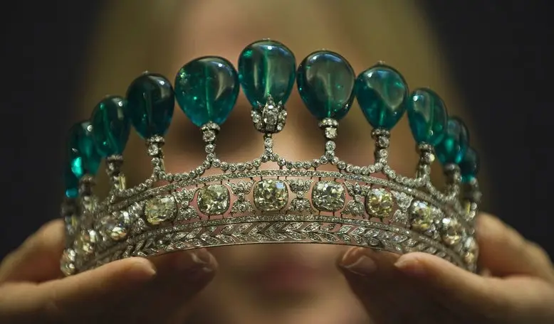 俄罗斯公爵夫人王冠上的珍珠可以拆卸下来,这是伊丽莎白二世女王将珍珠换成绿宝石。
