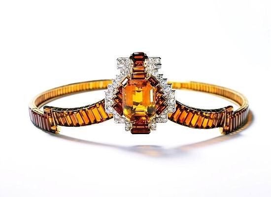 黄水晶皇冠:1937年制作,黄金,铂金,黄水晶,古欧洲和长角阶梯形钻石,中间部分可以分开,形成一个胸针。