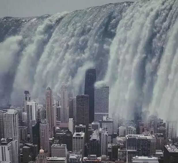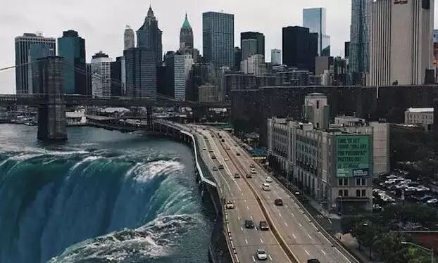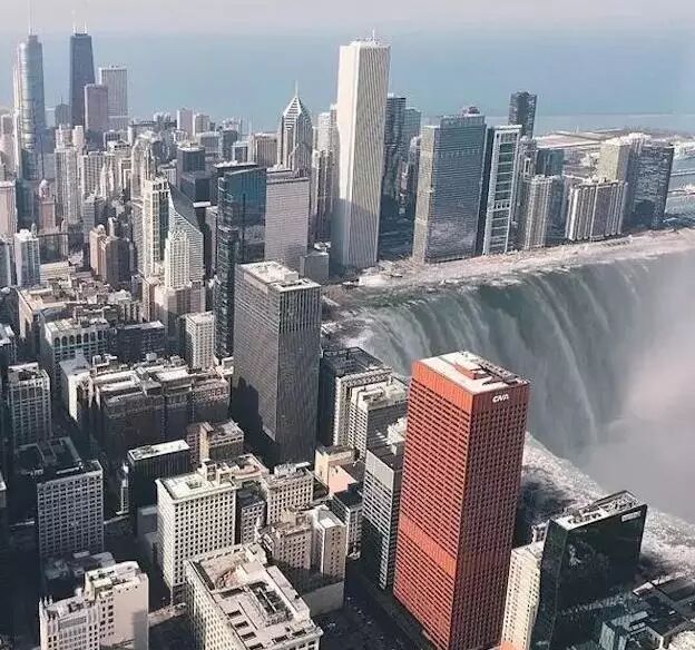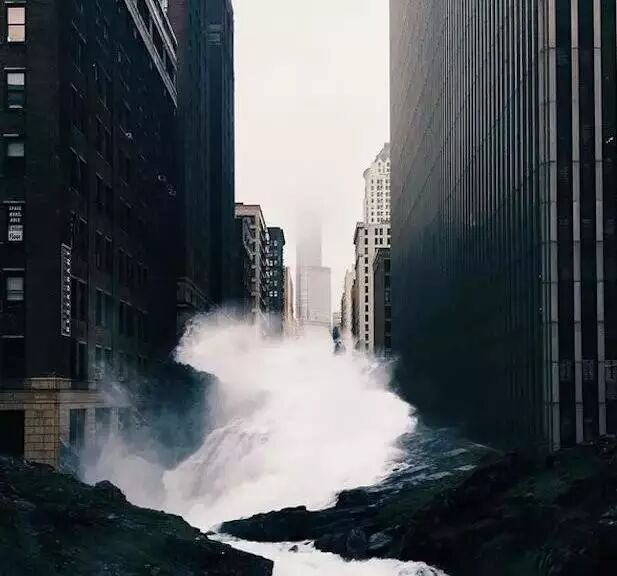 照片展现的是如世界末日般的纽约和芝加哥。从天而降的巨大瀑布、被海洋淹没的城市、巨大的月球笼罩天际、扭曲的楼房……无一不给人带来震撼视觉效果。