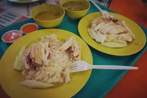 通常被称为新加坡的“国菜”,清蒸或水煮的鸡肉盖在芳香油亮的米饭上,再加几片黄瓜作为搭配的蔬菜。变化形式有烤鸡肉的或酱油鸡肉的。用优质老抽、辣椒、大蒜和姜泥调成的蘸料给它增添了额外的魅力。