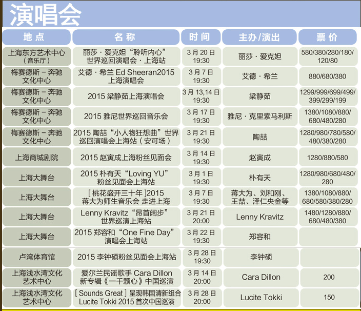 一过新年,各种演唱会就纷至沓来:梁静茹、雅尼、陶?、赵寅成、朴有天、蒋大为、郑容和、李钟硕……你会去看一场吗?
