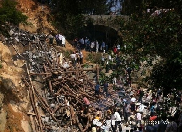 案件还原:2014年5月3日下午1时许,广东茂名高州市深镇镇良坪村委会坑口村一座在建石拱桥,因施工支架没有详细的施工方案、支架材料选用不当、搭设不合理、没有进行支架预压和荷载试验等严重违反施工规范要求问题,发生坍塌事故,造成11人死亡,16人受伤。