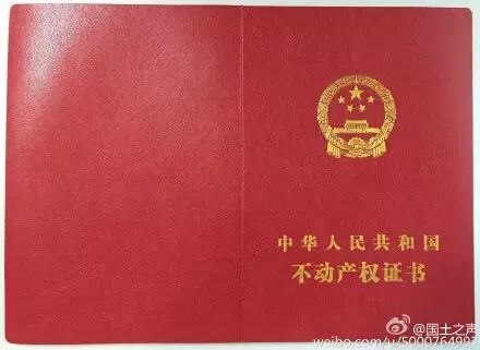 《不动产权证书》封面大红底烫金字,有国徽,国徽下面写着中华人民共和国不动产权证书,打开封皮的背面有防伪标识。