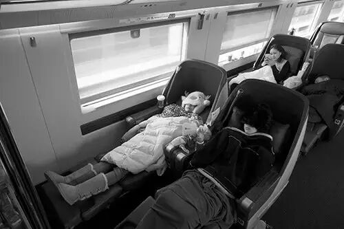 2011年,北京到沈阳的列车车上,有人疲倦的趴在小桌子上睡着了。