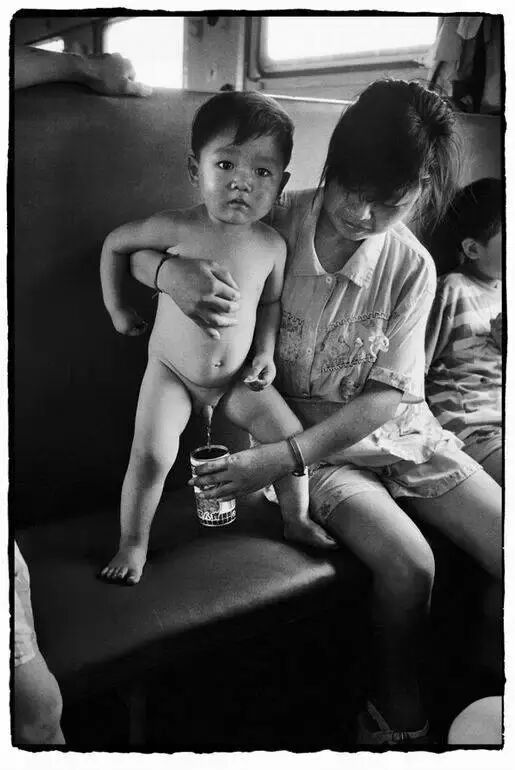 1992年,从南宁开往北京的列车上,由于车厢太拥挤,这位年轻的妈妈想出了用八宝粥的铁罐来当作“临时厕所”,以解决儿子的内急。