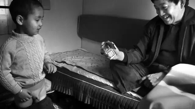 1995年,从西安开往西宁的列车上,一位年轻的父亲抱着他的孩子站在车厢过道内。也许由于他的孩子太饿了,他临时充当了“母亲”的角色,让孩子满足地在他的怀里睡着了。