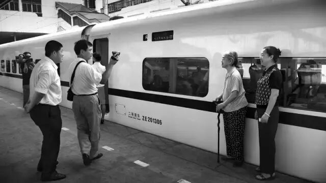 2007年,南昌到上海的动车,一位年轻人为自己的母亲拍照留念。