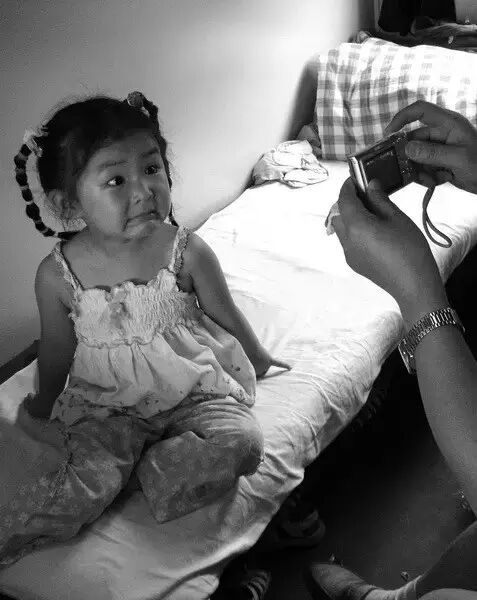 2006年,贵阳到北京的列车上,一位父亲为自己的女儿拍照片。