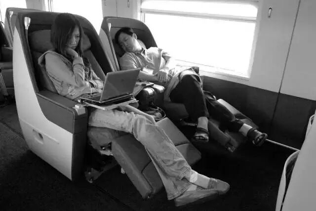 2013年,北京到上海的京沪高铁,一位女士在办公,其他的人则睡觉的睡觉,无聊的无聊。