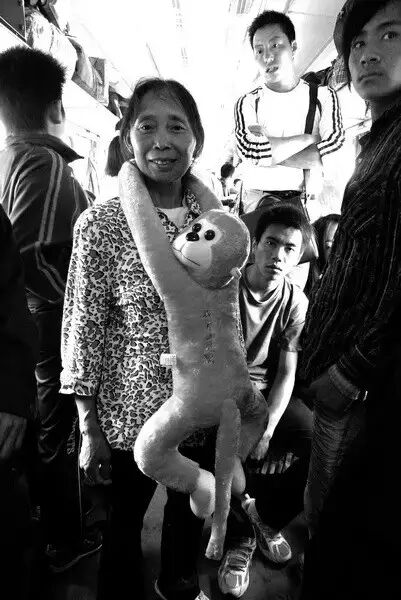 2009年,昆明到西安的列车上,一位阿姨脖子上挂着毛绒玩具猴子走在车厢里吸引了大家的注意力。