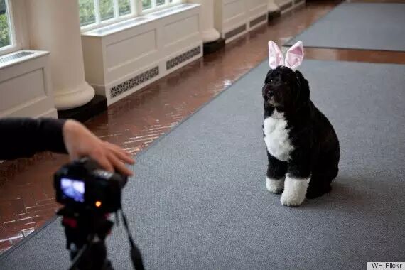 “波”赢得了白宫内外的喜爱,这是它在白宫东门廊参加复活节滚蛋活动录像的照片,这张图入围了当年白宫年度精选。