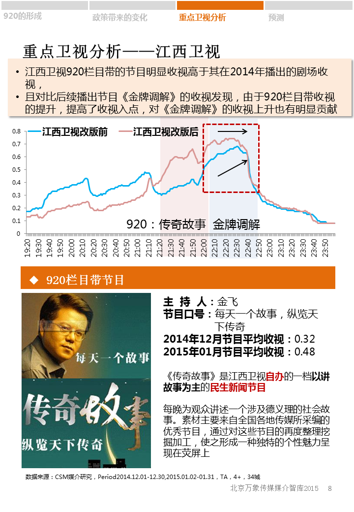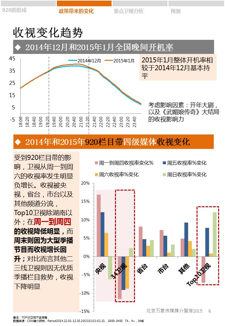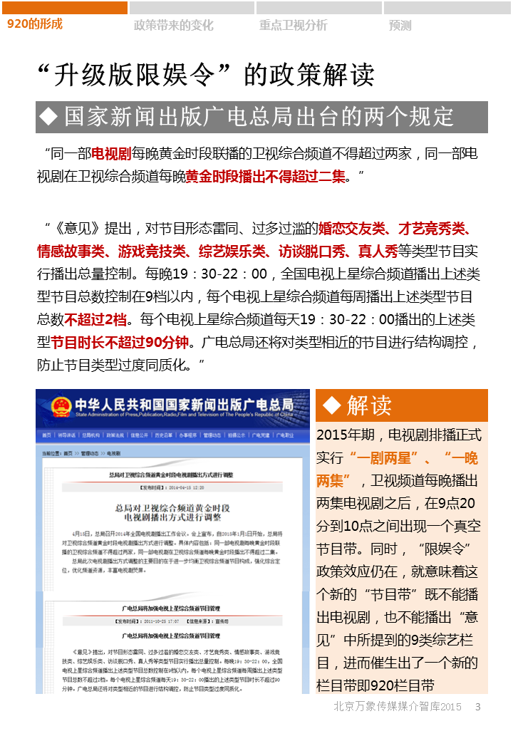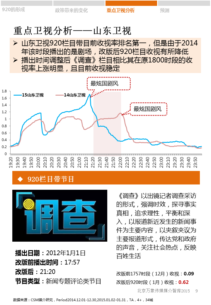 2015年新年伊始,各省级卫视顺应广电总局“一剧两星”的新政策,纷纷开辟920栏目带。各大卫视920栏目都有哪些?收视如何?920栏目带未来发展趋势又将怎样?