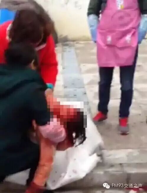 视频一开始,两名妇女抱着一个满脸是血的小孩子,着急地等待远处呼啸而来的120急救车。小孩子身着浅色棉衣,但已经被喷涌而出的鲜血沾满,令人不忍直视。孩子被送上担架时,鲜血还不时地滴下来。