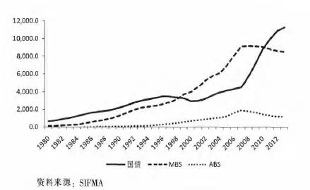 美国既是资产证券化的发源地,也是迄今为止资产证券化规模最大的国家。美国住房抵押贷款支持证券(Mortgage Backed Security,MBS)和资产支持证券(Asset-BackedSecurity,ABS)未偿付余额最高时分别达到9.2万亿美元(2008年)和1.9万亿美元(2007年),分别占同期美国国债市场余额的160%和40%。美国次贷危机爆发后,资产证券化业务显着萎缩,截至2013年第二季度,美国MBS和ABS余额分别为8.5万亿美元和1.2万亿美元,而同期美国国债市场余额已增至11.3万亿美元。