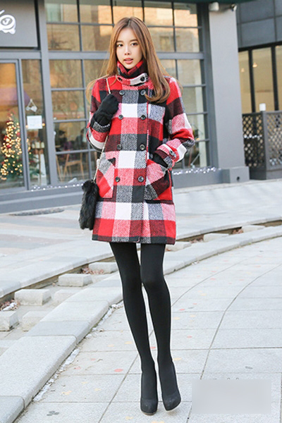 这款格纹大衣款式经典优雅,将沉稳大气的黑白灰三色结合在一起,再加入靓丽的红色,瞬间就点亮了整体穿搭,打破冬日的沉闷。
