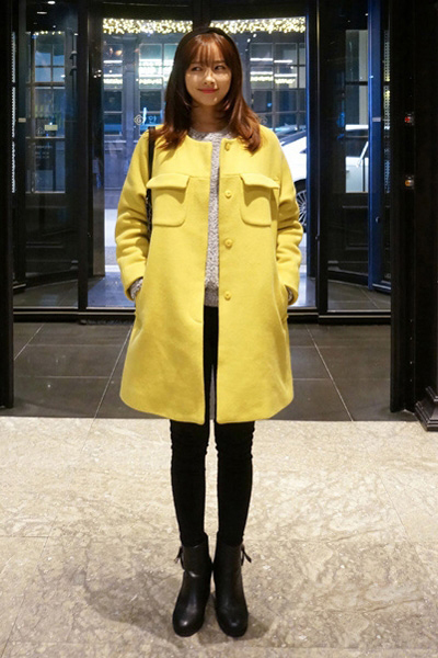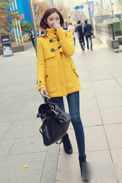 黄色大衣明媚吸睛,似乎给冬日注入了一抹暖阳,让人从内心里温暖起来,经典的学院风设计,有着明显的减龄效果,穿出青春活力。