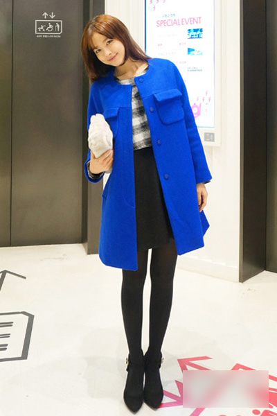 宝蓝色的大衣也是冬日的大热门,气质女性的挚爱,整体设计简约大气,时尚显气质,精致的圆领设计显得更加清爽,口袋设计个性俏皮,穿着这一身出街绝对拉风抢镜。
